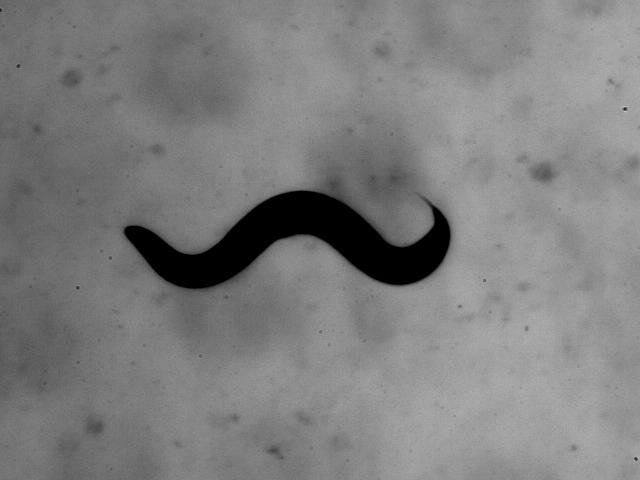 Our example here is the crawling behavior of the roundworm, C. elegans. In the experiment of (Stephens et al., 2008), the worms were left on a plate to crawl around, and their motion was recorded from the top by a microscope and digital camera at 4 frames per second. A typical image looks like this: